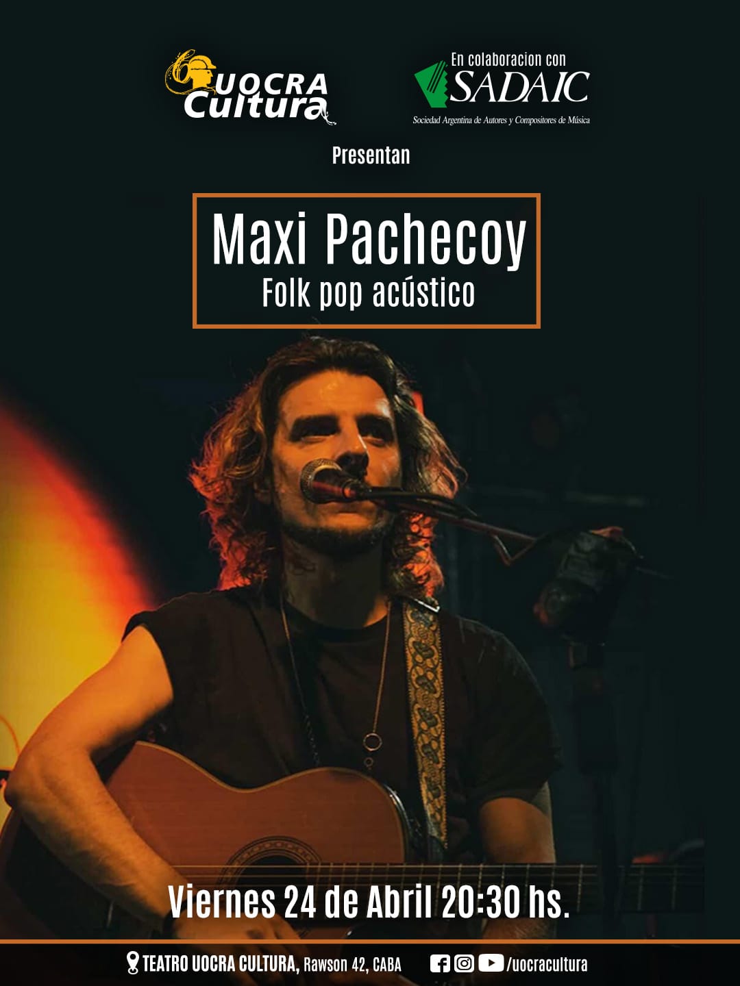 Maxi Pachecoy propone un recorrido por su nuevo proyecto discográfico junto a algunas de las composiciones más queridas de su repertorio, en un formato acústico que invita a escuchar, sentir y conectar con cada historia.