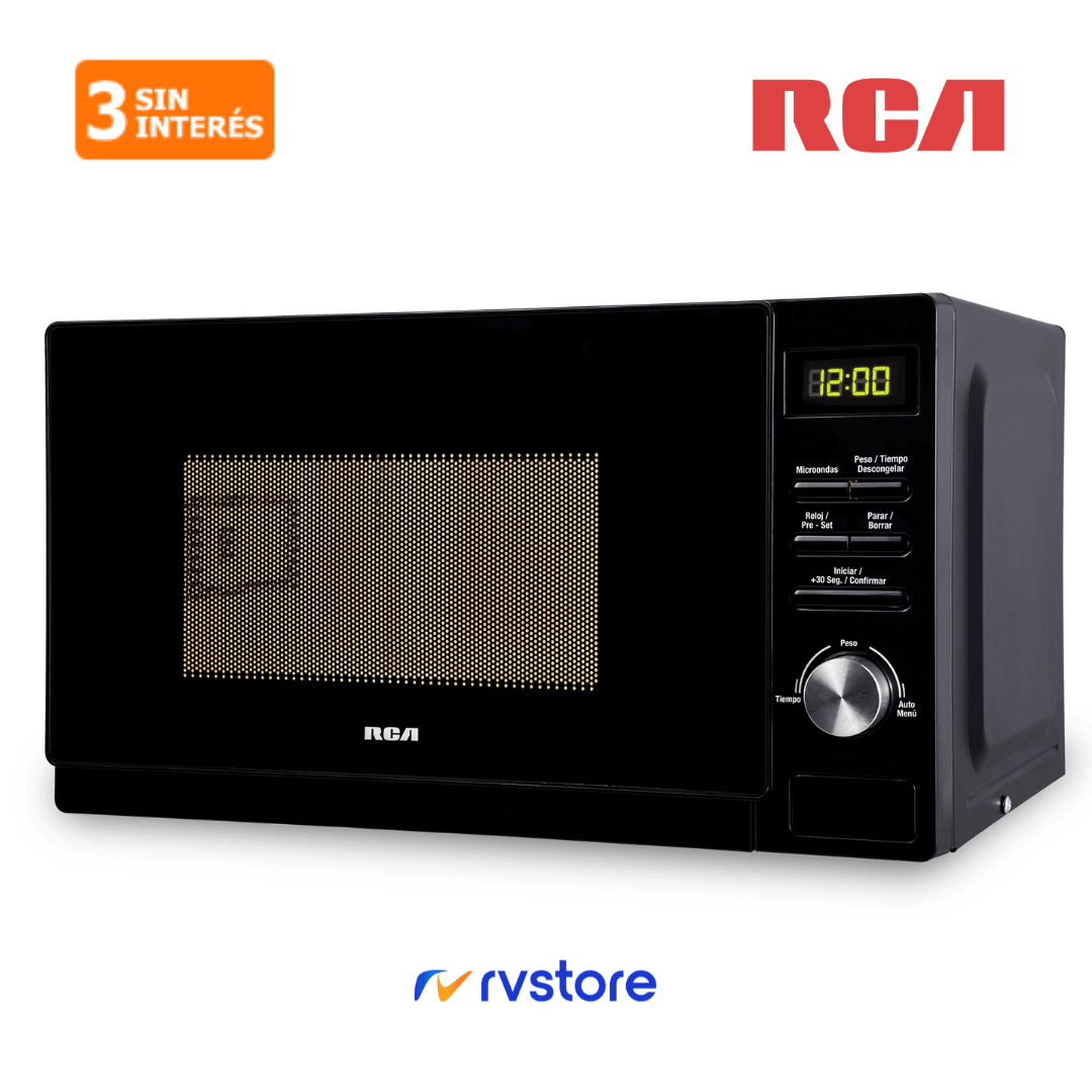 Simplificá tu día a día con el microondas RCA R100DIG20, ideal para calentar, cocinar y descongelar tus comidas de forma rápida y eficiente. Con un diseño moderno en color negro, cavidad interior gris y control digital, este modelo combina tecnología, practicidad y seguridad para tu rutina en la cocina. Además, cuenta con 5 niveles de potencia, funciones de descongelado por peso y por tiempo, timer digital, alarma de fin de cocción y traba de seguridad para niños, todo pensado para que cocinar sea más fácil que nunca.